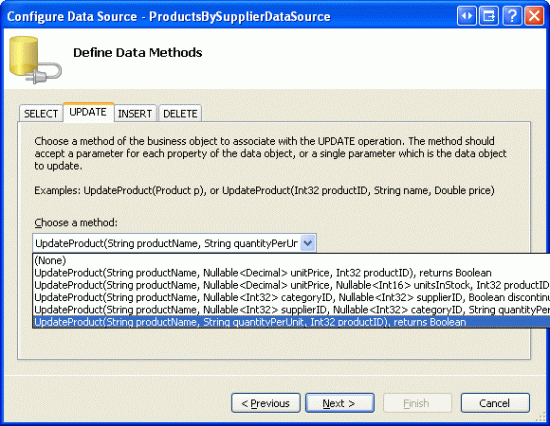 SelectMethod="GetProductsBySupplierID" UpdateMethod="UpdateProduct">