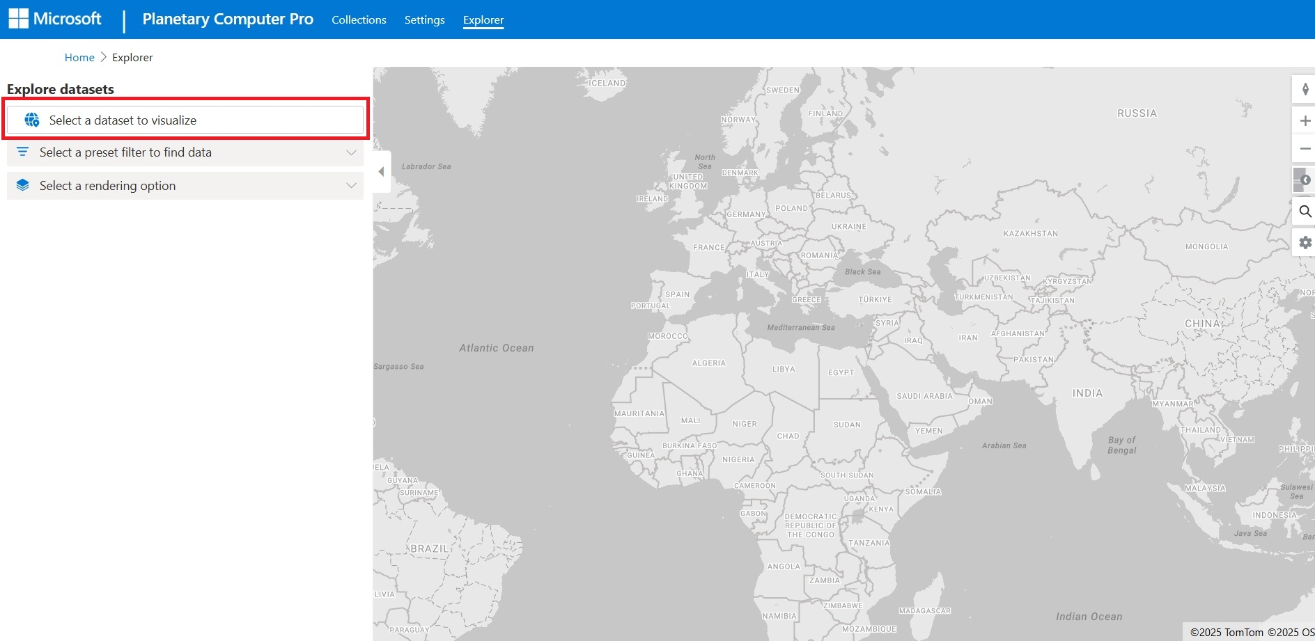 In questa guida introduttiva si apprenderà come interagire con Microsoft Planetary Computer Pro Explorer. L'Explorer è il modo più semplice per gli utenti di Planetary Computer Pro di visualizzare e interagire con i propri dati.
