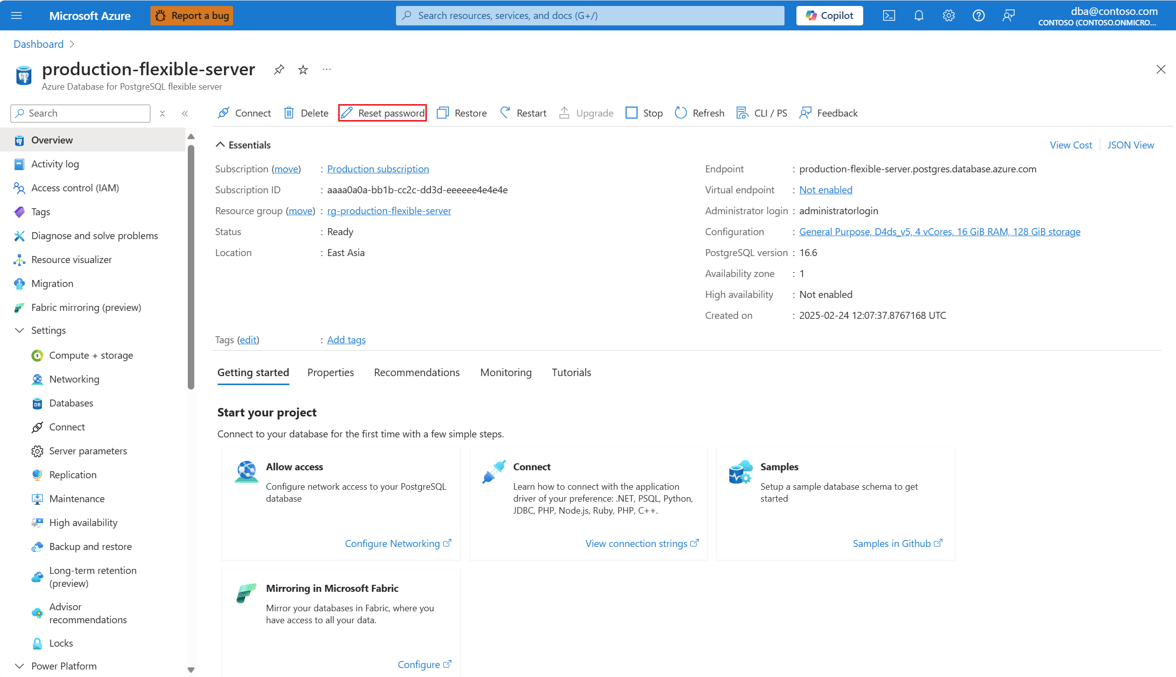- Nel portale di Azure, cercare e selezionare il nome dell'istanza del server flessibile di Azure Database per PostgreSQL.