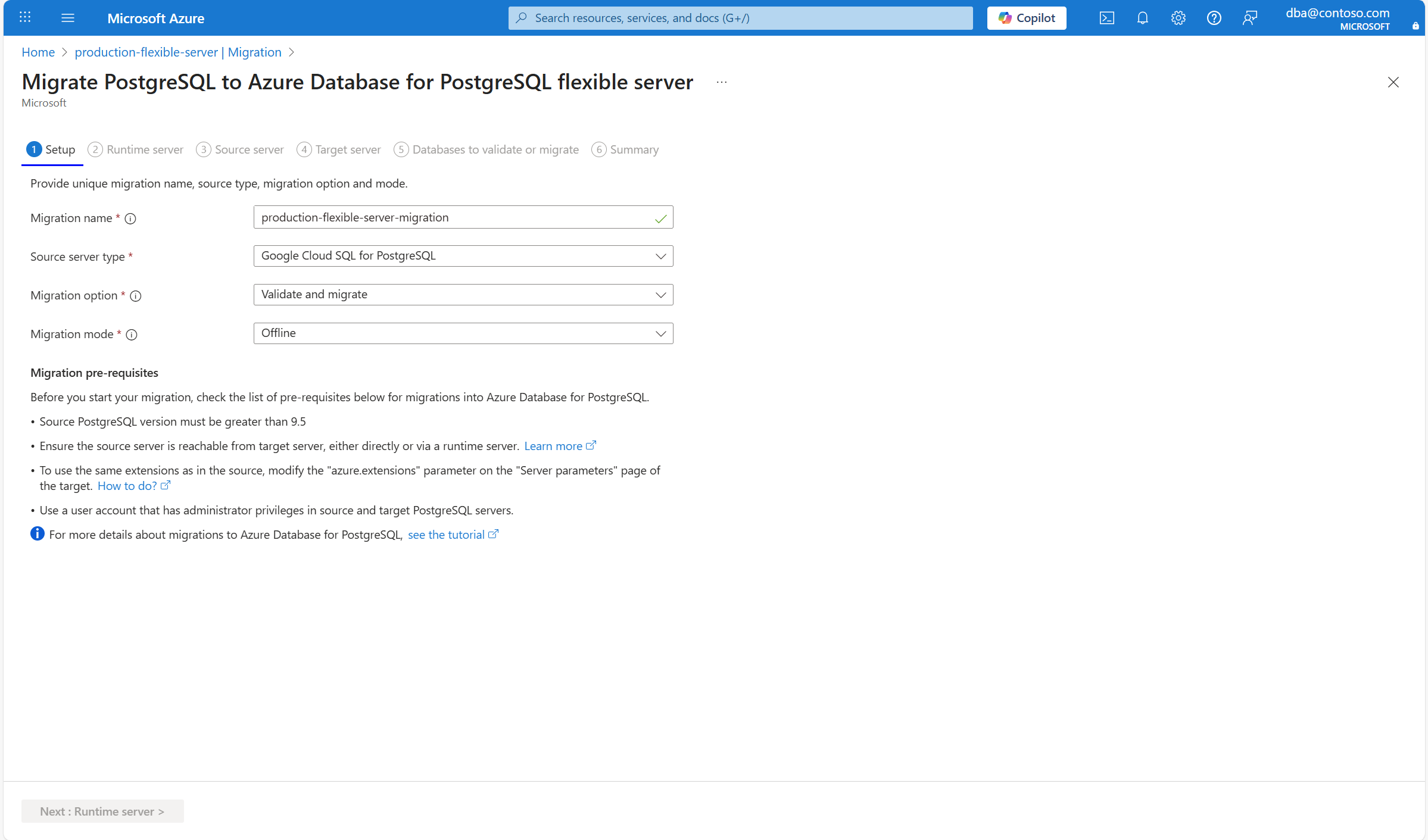 Questo articolo illustra come eseguire la migrazione di un'istanza di Google Cloud SQL per PostgreSQL al server flessibile di Database di Azure per PostgreSQL in modalità offline.