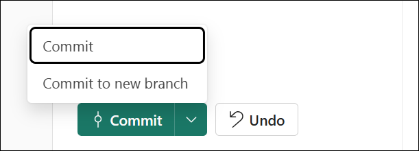 Dopo aver eseguito la connessione a una cartella Git, modificare l'area di lavoro come di consueto. Tutte le modifiche salvate vengono salvate solo nell'area di lavoro. Quando si è pronti, è possibile eseguire il commit delle modifiche nel ramo Git, oppure annullare le modifiche e ripristinare lo stato precedente.