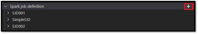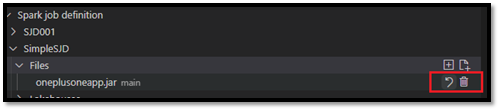 I processi di richiesta e il nome della definizione del processo Spark appena creata vengono visualizzati nel nodo principale Definizione del processo Spark in VS Code Explorer. Nel nodo di definizione dell'attività Spark, sono visibili tre sottonodi.