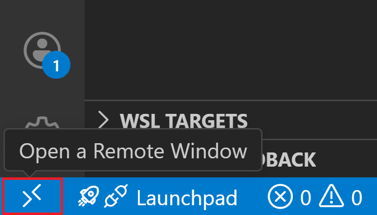 Selezionare il pulsante Apri una finestra remota in VS Code.
