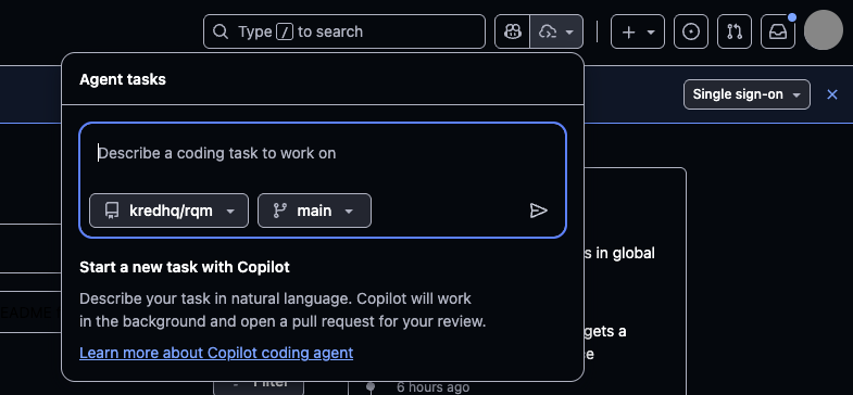 - Attività dell'agente GitHub Copilot in GitHub.com