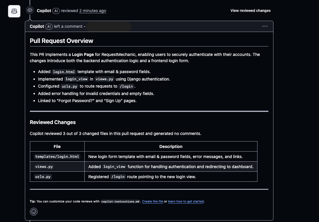 GitHub Copilot in GitHub.com accelera notevolmente il flusso di lavoro delle richieste pull automatizzando molte attività di revisione e documentazione dispendiose in termini di tempo: