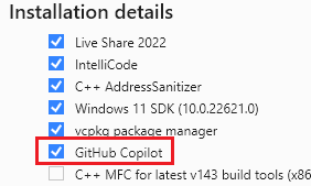 • [ツール]>[オプション]>[GitHub]>[Copilot]>[ソース管理の統合]>[Git プレビュー機能の有効化]