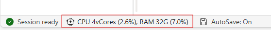 コンピューティング リソースの更新をノートブックのステータス バーに表示し、コンピューティング ノードの CPU とメモリの使用状況をリアルタイムで監視できます。