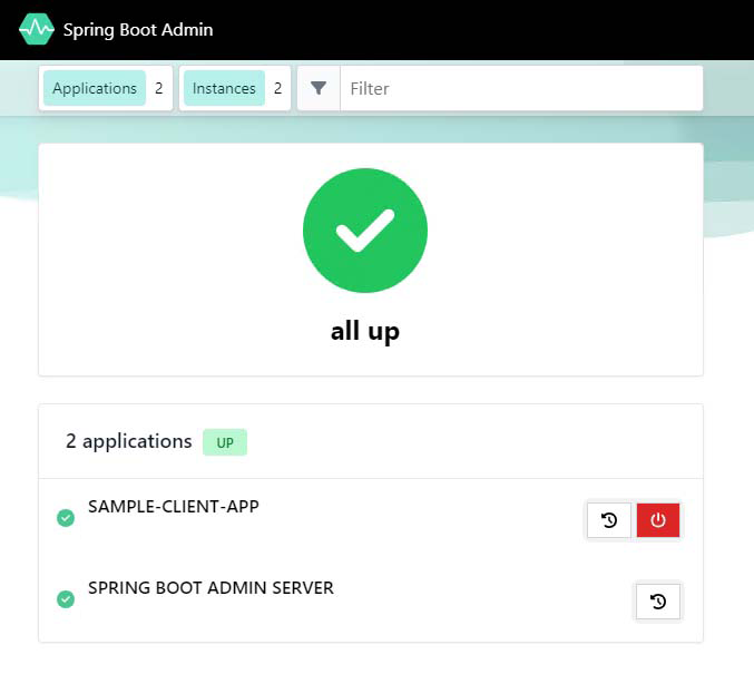 As etapas anteriores associaram o componente Admin for Spring ao componente Eureka Server for Spring. O componente Administrador habilita a descoberta de serviço e permite gerenciá-la por meio do painel administrador do Spring ao mesmo tempo.
