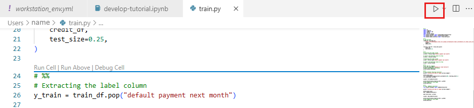 Nesta seção, você desenvolverá um script de treinamento em Python que prevê a inadimplência de pagamentos de cartão de crédito usando os conjuntos de dados de teste e treinamento preparados do conjunto de dados da UCI.