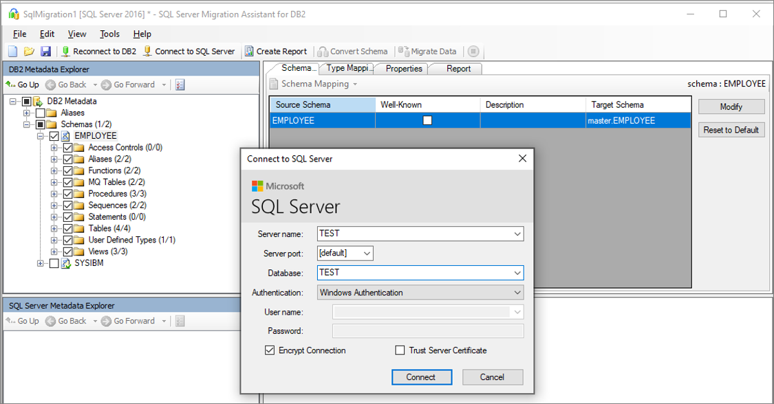 SQL Server Metadata Explorer, clique com o botão direito do mouse no banco de dados e selecione Sincronizar com o Banco de Dados .Migre os dados. No painel Db2 Metadata Explorer , clique com o botão direito do mouse no esquema ou objeto que deseja migrar e selecione Migrar Dados. Como alternativa, pode selecionar o separador Migrar dados no canto superior direito.