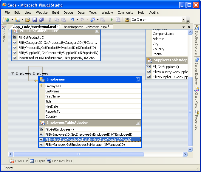 EmployeesTableAdapter现在应包含一组新的方法来访问指定月份雇用的员工。
