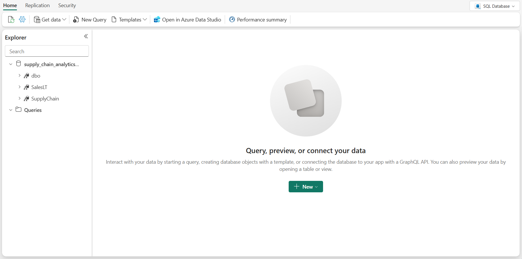 在 Fabric 门户的数据库功能区中,选择“新建查询”按钮。